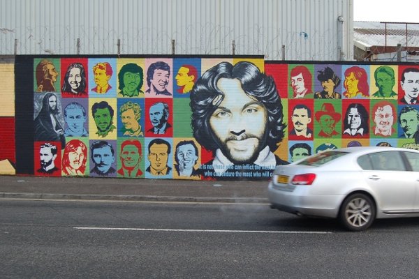Falls Road est la route principale traversant l’ouest de Belfast, en Irlande du Nord, allant de la rue Divis au centre-ville de Belfast jusqu’à Andersonstown en banlieue. Son nom évoque la communauté républicaine catholique de la ville, tandis que la Shankill Road voisine est majoritairement loyaliste et protestante, séparée de Falls Road par les Murs de la paix. Le quartier était un des points chauds du conflit nord-irlandais entre les années 1960 et les années 1990, avec des affrontements entre l'IRA et les soldats britanniques. WikipediaCliquez sur les vignettes pour afficher les photos plein écran